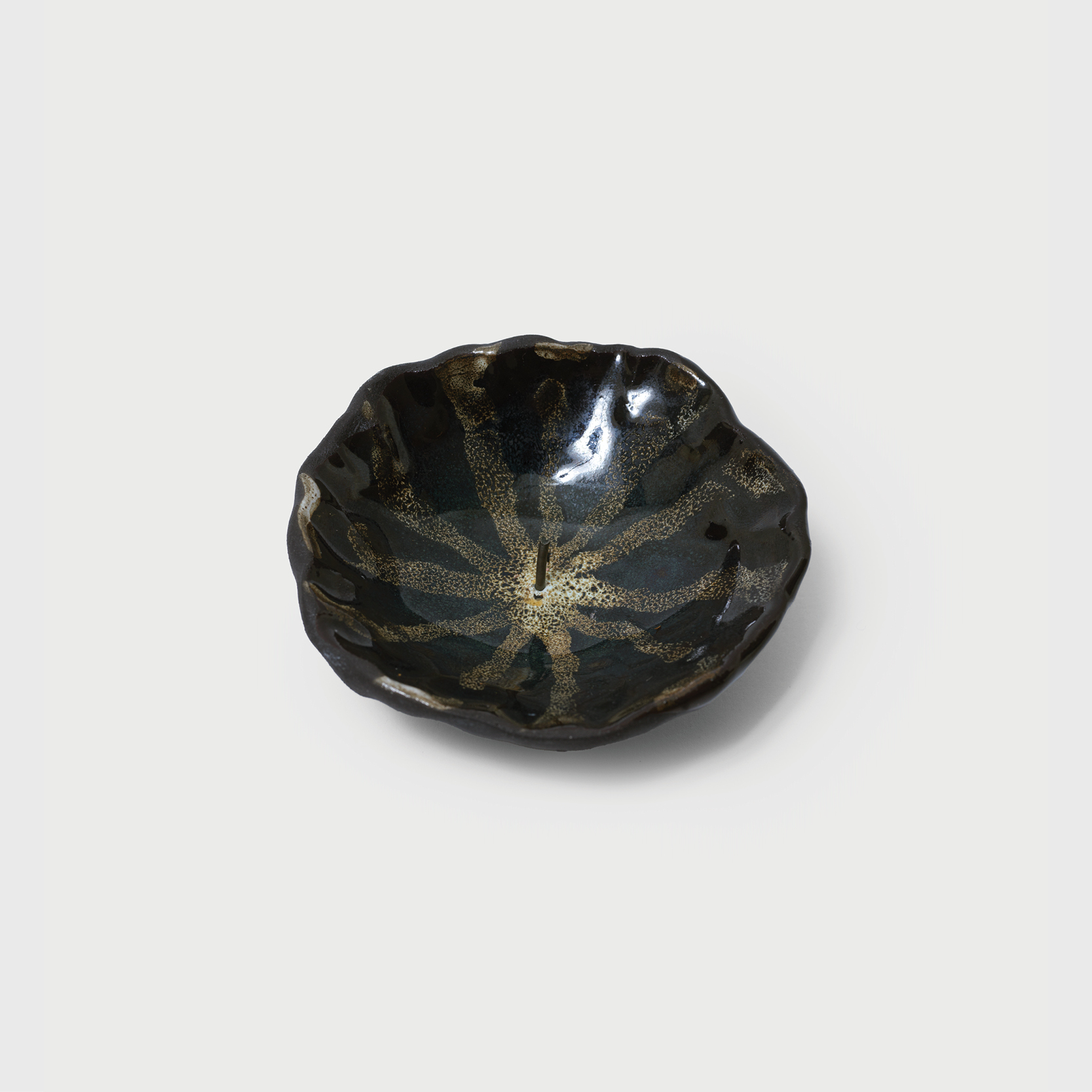 ΧΕΙΡΟΠΟΙΗΤΟ ΚΗΡΟΠΗΓΙΟ ΓΙΑ ΛΕΠΤΑ ΚΕΡΙΑ, ΤΗΣ ISMENE KING (KARIS STUDIO). ΣΧΗΜΑΤΙΣΜΕΝΟ ΣΤΟ ΧΕΡΙ ΚΑΙ ΕΜΠΝΕΥΣΜΕΝΟ ΑΠΟ ΜΟΤΙΒΑ ΠΑΡΑΔΟΣΙΑΚΩΝ ΚΑΙ ΑΡΧΑΙΩΝ ΕΛΛΗΝΙΚΩΝ ΚΕΡΑΜΙΚΩΝ. ΜΑΥΡΟΣ ΠΗΛΟΣ ΜΕ ΣΚΟΥΡΟ ΥΑΛΩΜΑ ΚΑΙ ΛΕΥΚΟ-ΧΡΥΣΟ ΑΚΤΙΝΩΤΟ ΜΟΤΙΒΟ.